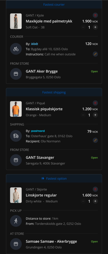 Pick up, kurer og frakt
